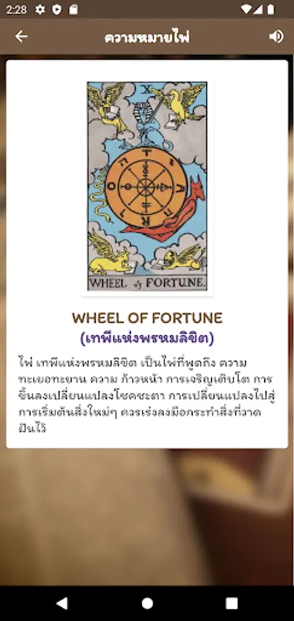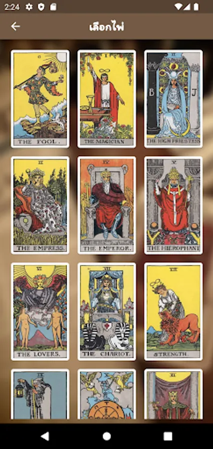 This application uses the Rider-Waite card set, consisting of 78 cards.