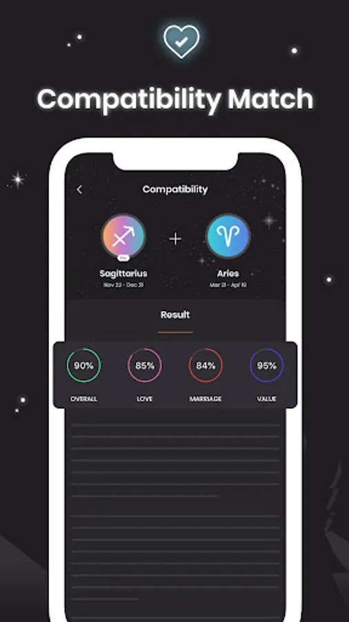 Not only that, is your partners, crush, future partners horoscope matching to yours at which level can be discover in our app to better understand each other even better.