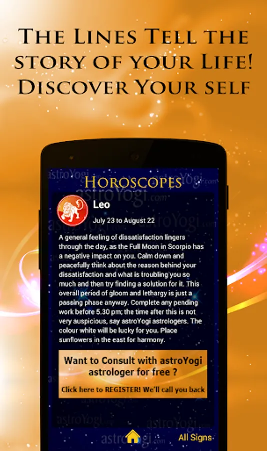 Astroyogi.com presents free Palm Reading app on your android phone. Based on the lines of your palm, know what the fate has in store for you. Read Palmistry to find out all about your future.