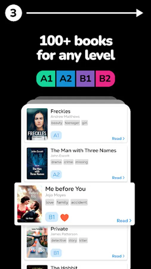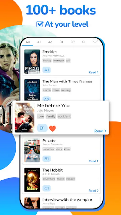 Experience the joy of learning English through literature! Dive into our vast library of adapted English books suitable for all levels (A1, A2, B1, B2). All the stories are written in a simplified language, offering a reading experience that's tailored to your proficiency level.