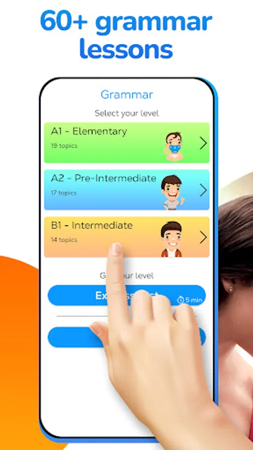 Sharpen your English grammar skills with Express English . Our app includes comprehensive grammar lessons, followed by tests and exams to consolidate your learning and monitor your progress.