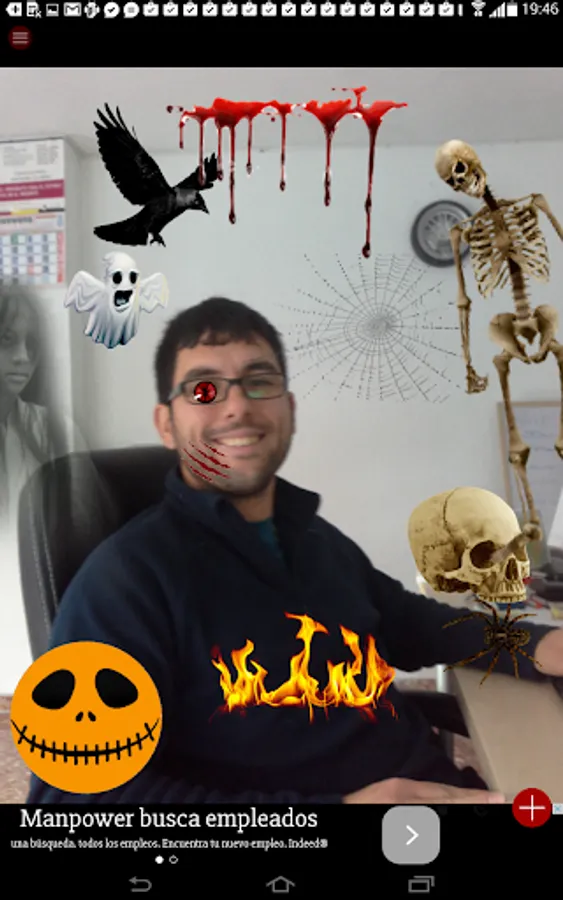 Just select a picture you have in your gallery or take one in the moment and start putting terrific stickers until you create something really scary. Once you are done, send it to them and wait for reactions