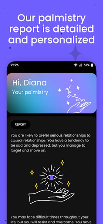 After short waiting you get a push notification with a detailed palmistry report.
