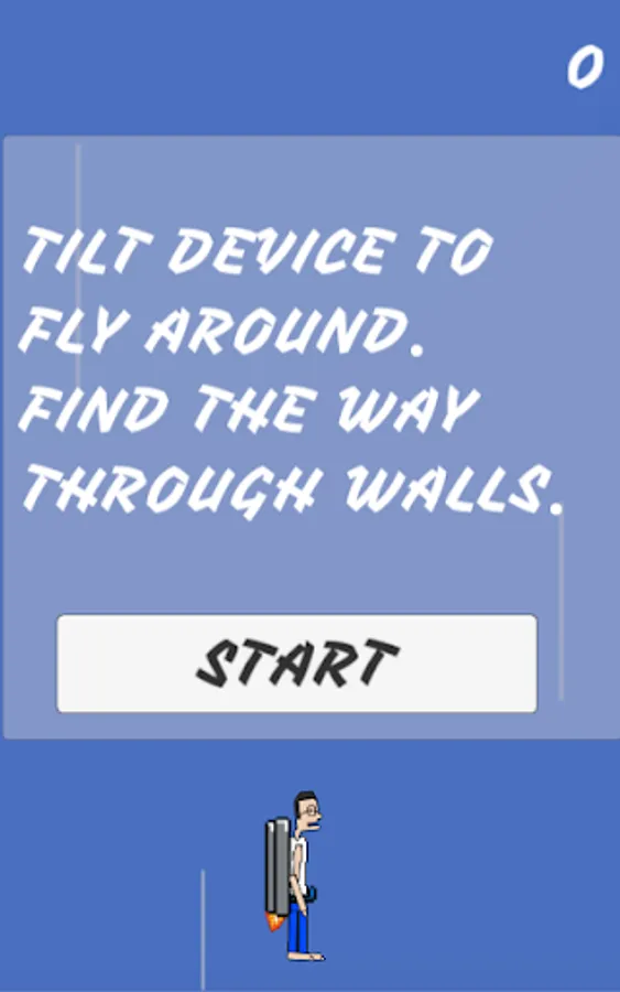 Control the flying dev on his jetpac using the device tilt to carefully traverse gaps at high speed and score points !