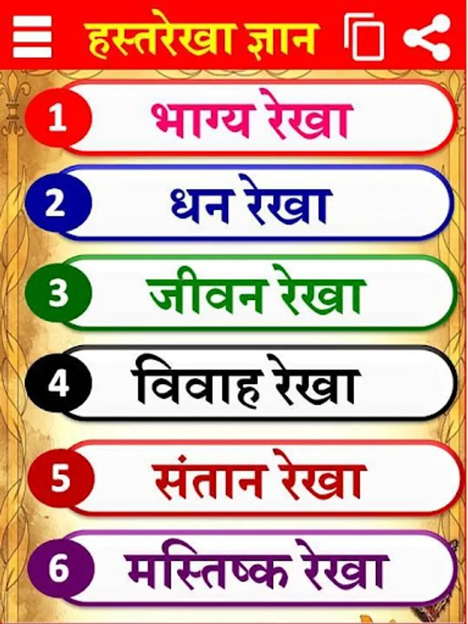 Hast Rekha Gyan app provides Palm Reading basics in Hindi. This application classified information about lines on our palms and their meanings in Hindi. Palmistry lines predict our future according to palm astrology. Here you can get information related to palmistry and Hand reading in Hindi. You can use this app both online and offline.