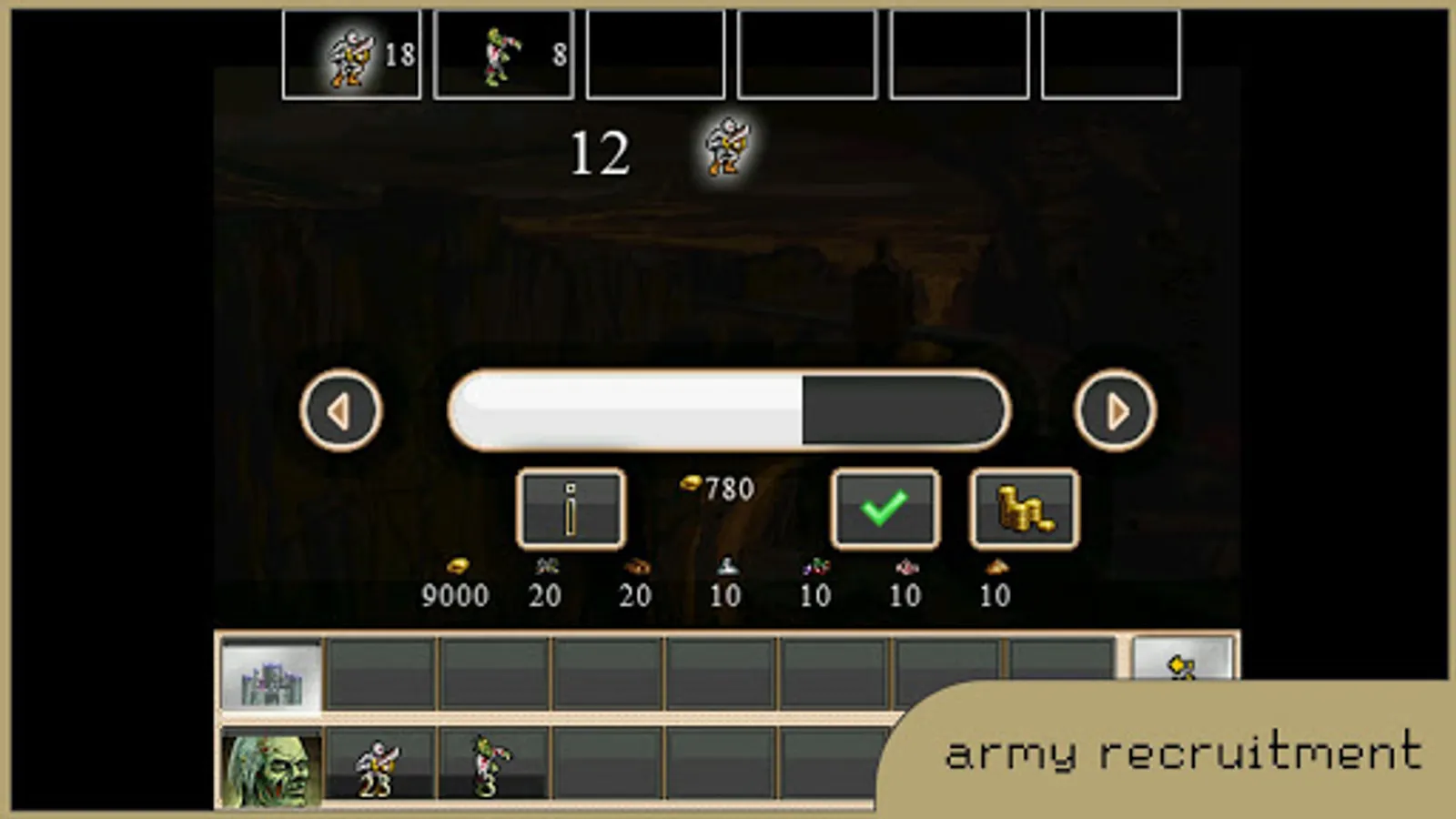 An old-school pixel strategy. Brilliant graphics and well-thought gameplay allow you to play for hours! You control heroes, gathering resources, conquering new lands and fighting opponents. There are 7 factions (Knight, Barbarian, Warlock, Sorceress, Necromancer, Wizard, Varangian), 114 power artifacts and 180 types of creatures for your armies.