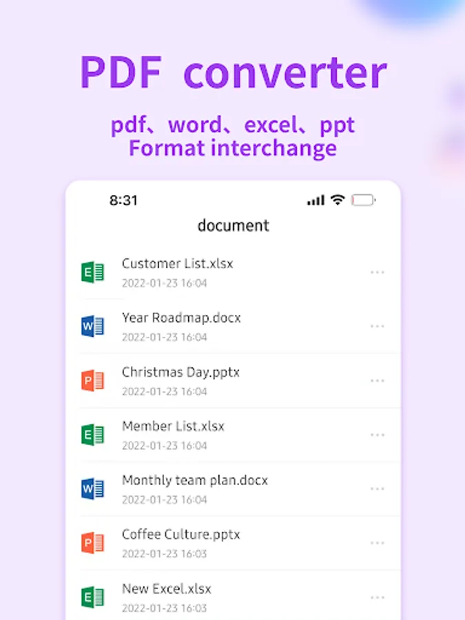 Pdf converter can quickly convert files in common formats (such as doc, xls, ppt, png, jpg, etc.) to PDF files, and supports PDF and Word, Excel, PPT, picture format conversion, and the conversion effect is clear.