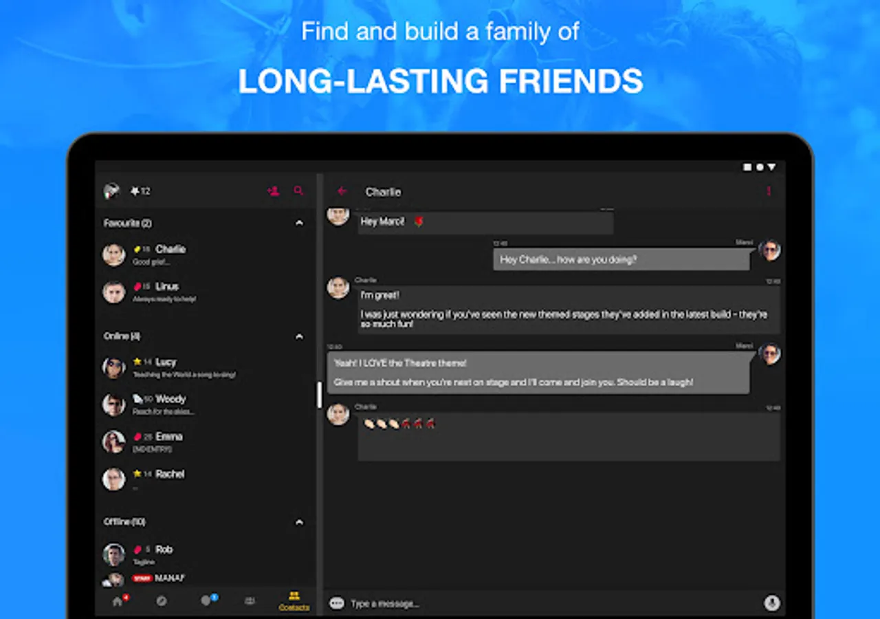 - Level up and be at the top with achievements, charms, and badges. And show off your status within your community.