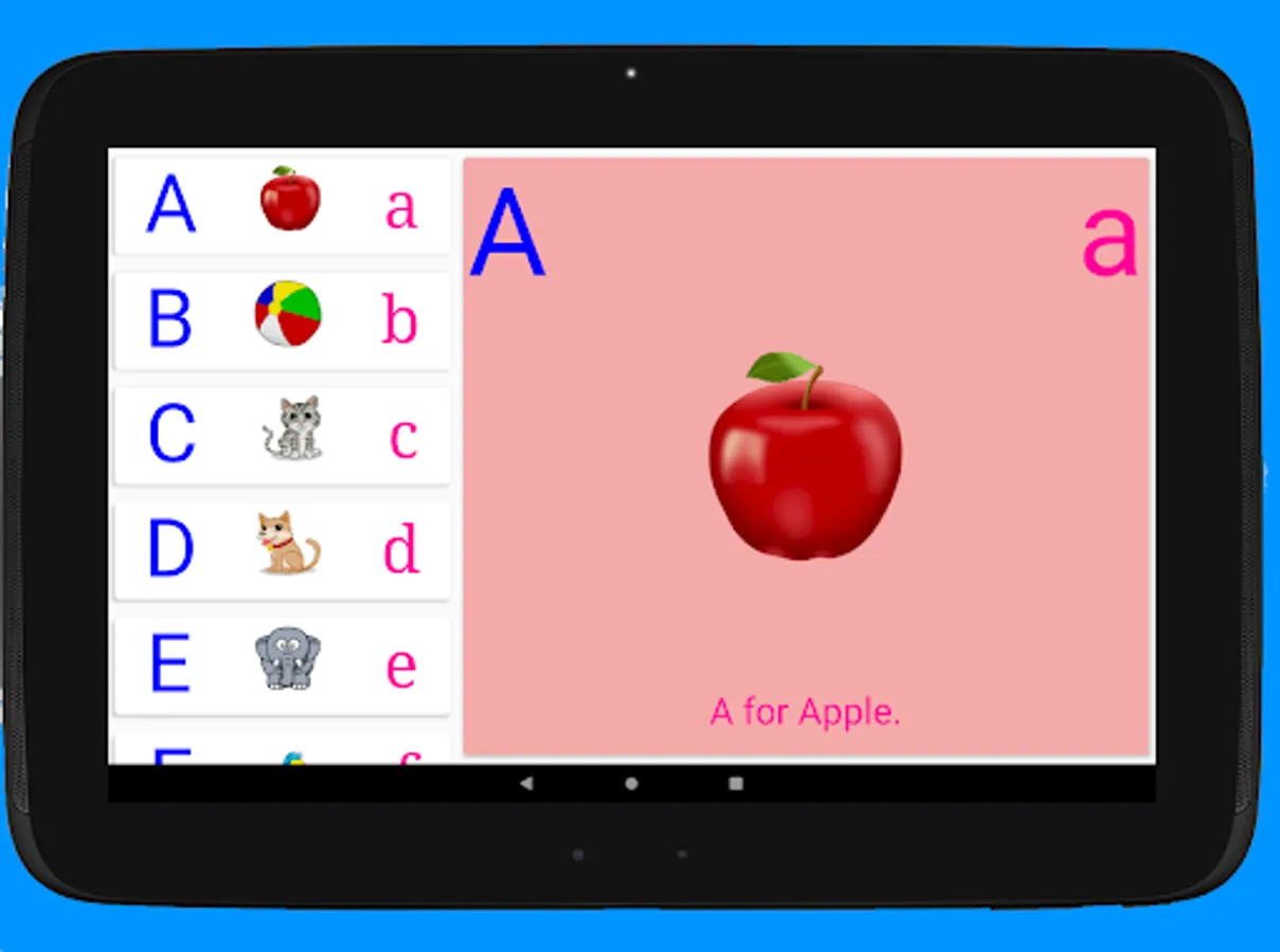 This application is very useful for one who has just started learning ABCD alphabets & Numbers. It has alphabets in capital letter as well as in small letter. The application also contains Numbers from 1-10. For faster learning we have used cartoon type images thinking about user physiology. It also helps to speak English alphabets.