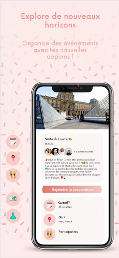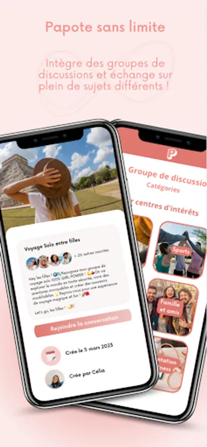 Our team has created discussion groups by region and by interests to help you find friends who share the same passions as you. You can chat with motivated women to broaden their horizons and organize activities together, be it outings, trips or special events organized by the Palz team.
