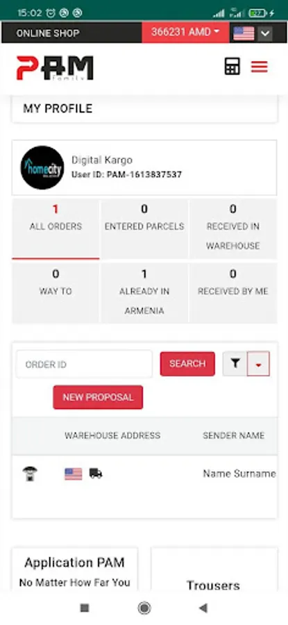 PAM allows users to order and deliver parcels throughout the world. In our webshop users can find cheap products which will be delivered to them.