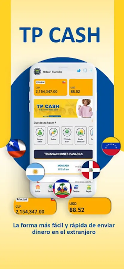 As easy as sending a Whatsapp Are you in Chile? Transfer between TP Cash users and send money to Argentina, Mexico, Colombia, Brazil, Ecuador and Peru in 2 clicks and instantly