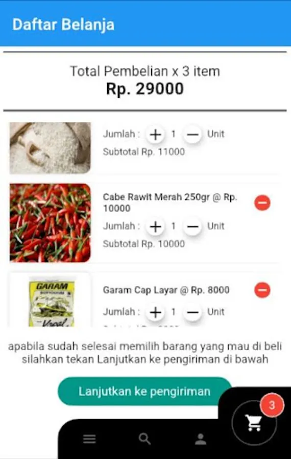 Grocery ordering application, for the banjarbaru and surrounding areas