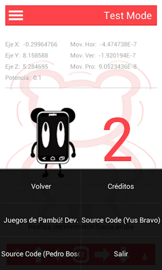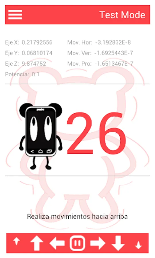 It incorporates a test mode that allows you to measure the acceleration of your mobile, both gyro and motion acceleration in 3 axes, incorporating a friendly interface and a move counter.