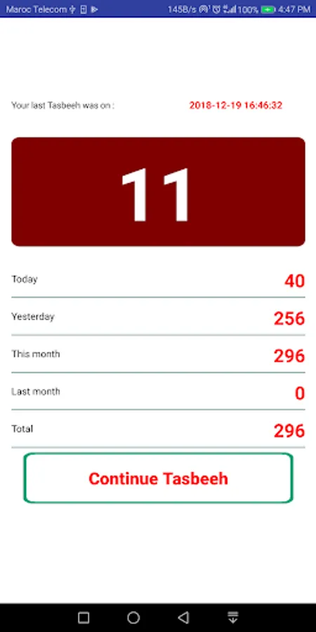* Giving you the last date and time you have done tasbeeh each time you open the counter