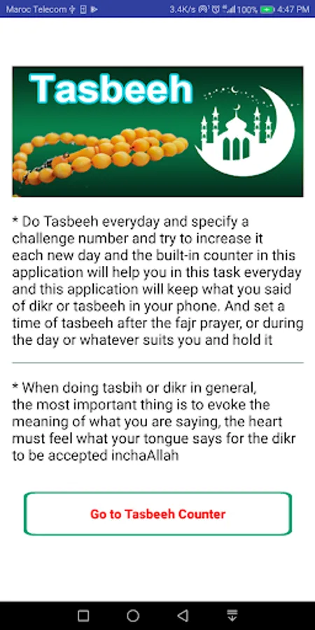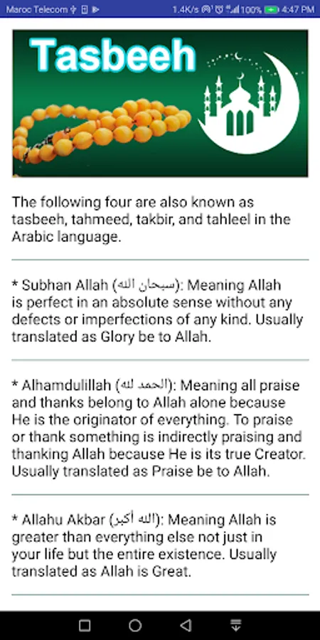 * Let you challenge yourself and increase your daily tasbeeh numbers