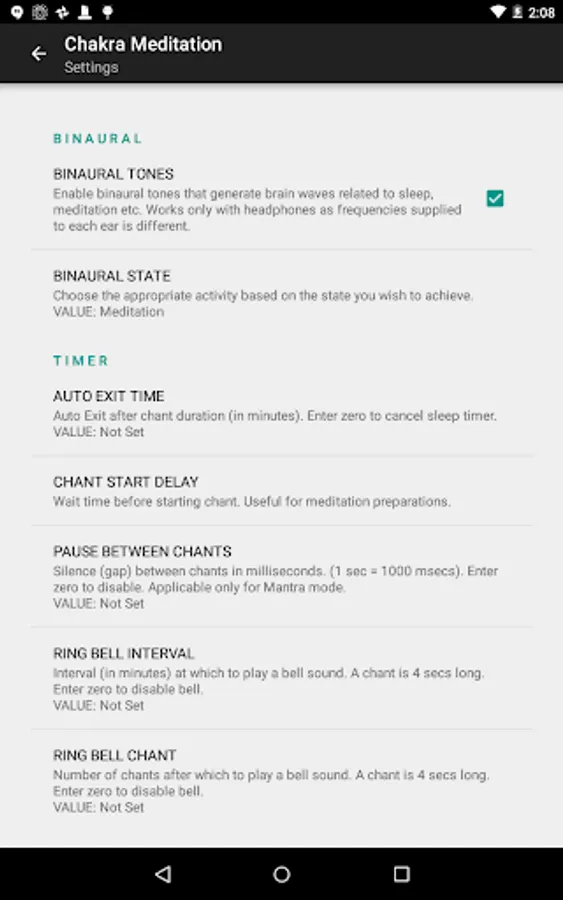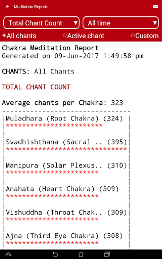 Detailed information on Chakras is provided as well as meditation technique to help beginners. Apart from all the Chakra mantras, it also is a tone generator for various chakra related Solfeggio, Tantra and Musical binaural frequencies. It is highly-configurable and includes reporting functions.