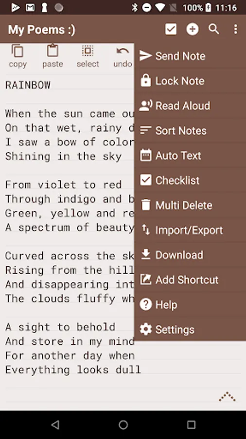 The Pro Version of Android's tiniest Notepad app. You can find the free version here.