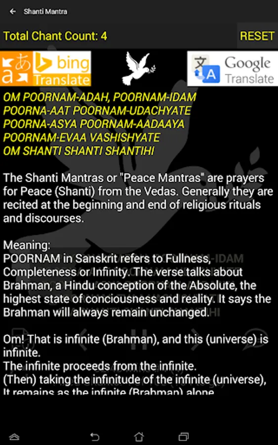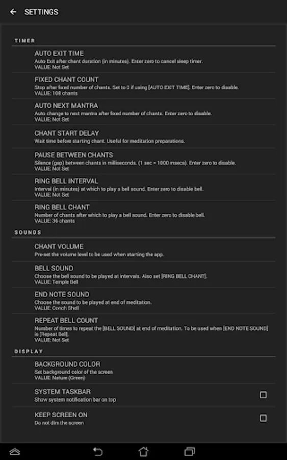 A simple, no-nonsense Meditation Timer, Trainer & Helper for chanting various powerful Hindu & Buddhist mantras. Care has been taken to provide the most accurate versions of these ancient mantras. These time-tested vedic Om mantras will help you meditate, relax your mind and body and uplift your soul.
