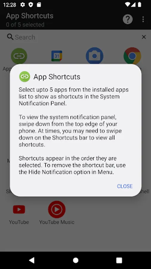 Add App Shortcuts for any app to the Notification panel for quick and easy access from any screen. It works like a quick launch bar for your favorite apps.