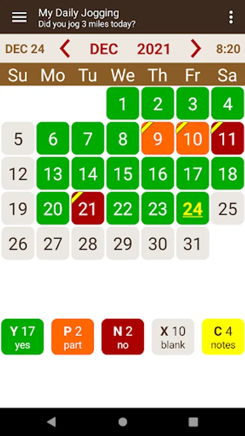 Having difficulty keeping to your daily resolutions, habits and routines? If so, you have come to the right place! Studies say that you are likely to adhere to a routine better if you track it daily. Habit Calendar makes tracking one or more activities so easy! Start by adding one or more activities/habits you wish to track. Pull up the calendar each day and just mark if you completed the task or not. Get a report anytime to evaluate your performance.
