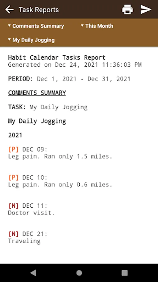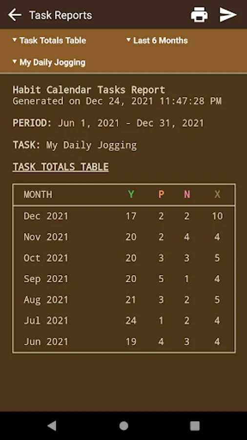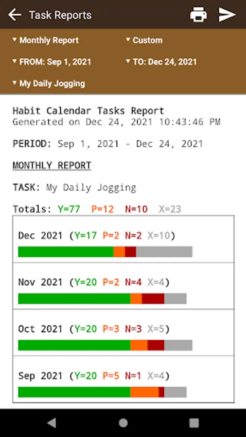 Marking the calendar is as easy as touching or swiping across the days. You can add an extra note/comment for the day if required. Generate reports any time to understand task trends, habit adherence, staff attendance etc.