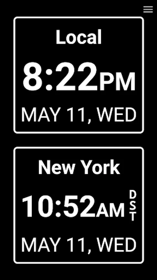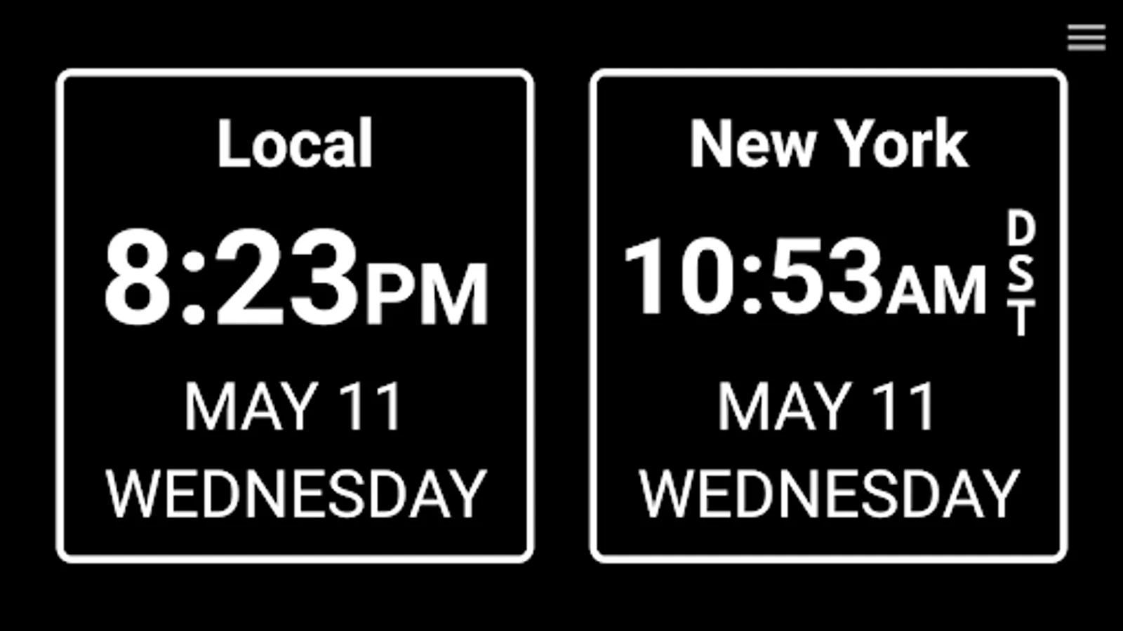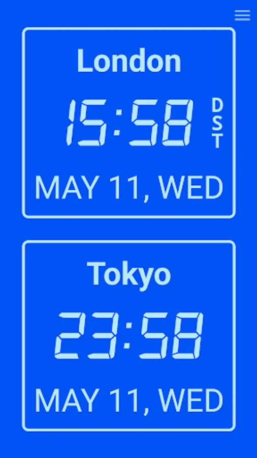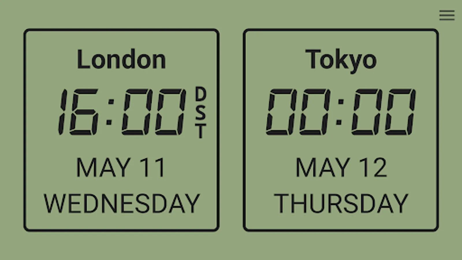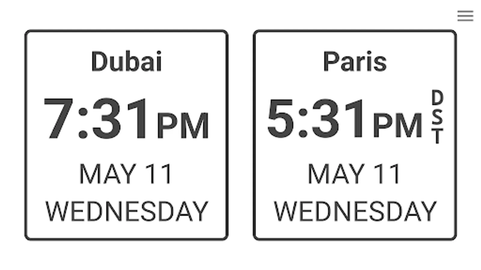 Track the time at two of your friends or relatives places with this digital world clock. Add any city in the world to see the time there.