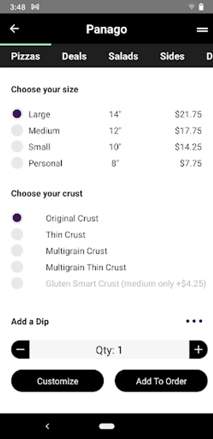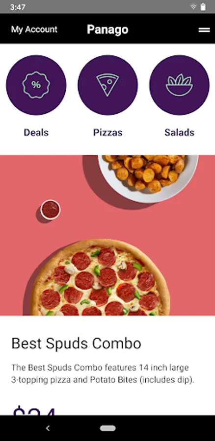 Introducing the new and improved Panago Pizza app! Now it’s even easier and more fun to order fresh pizza on your Android device. It’s the simple way to choose from our 35+ item menu, customize your order, create your own pizza and stay on top of great deals.