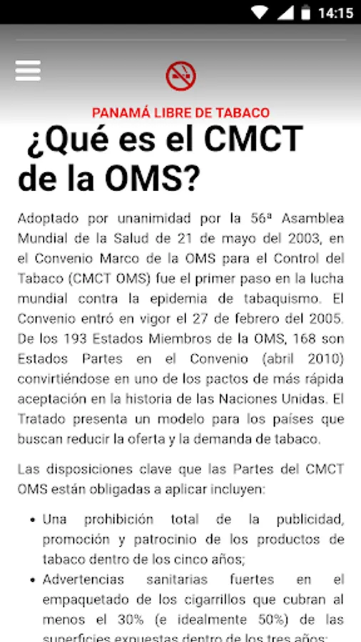 Application designed to help overcome tobacco addiction. Panama is the first country in Latin America to achieve low tobacco consumption, the struggle has been intense but progress has been made in anti-smoking prevention and awareness.