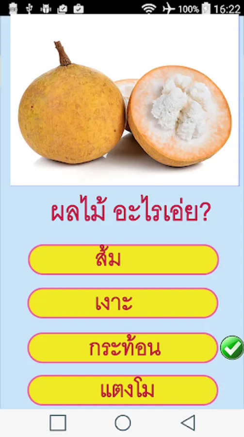 What a fun guessing game, this game is a question that will have fruit to friends that I was not anything. Fruit Thailand and overseas, more than 100 species of who I was, but finally won me the answer will tell you the meaning of fruits such as English vocabulary on fruits with images reveal a beautiful addition to the fun to be had then. I could see the English vocabulary can make it memorable. Vocabulary for sure English and excel even more. The organizers do hope This app is useful, but Thailand, more or less, if you have any comments you can email me.