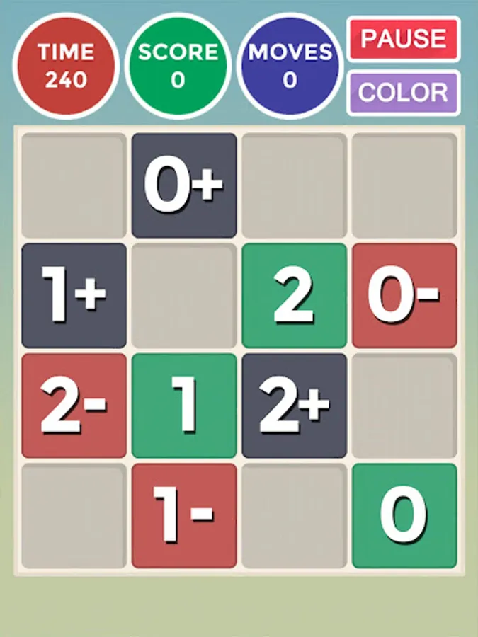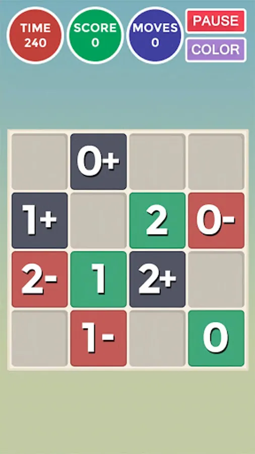 You will be given three PLUS, three MINUS & three NEUTRAL blocks on start. Your first target is to get all 0 to 9 NEUTRAL blocks on board simultaneously. Then your final target is to arrange them on their appropriate place. That's it. So, are you ready ?