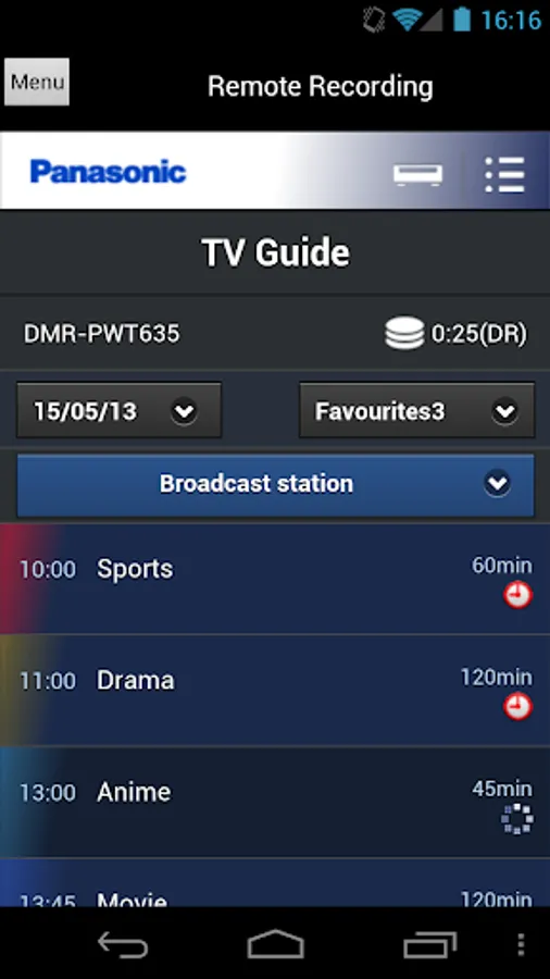 3) You can display TV Guide and set timer recording to your Recorders from Android devices.