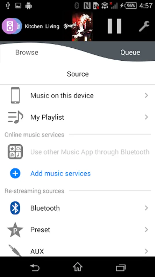 Bluetooth/DLNA/Qualcomm AllPlay are all supported by this one application.
