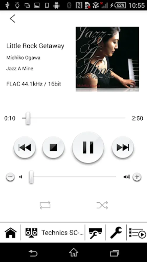 and create playlists easily and comfortably on the screen of a tablet or smartphone. When used with the Technics network audio player, the Music App screen displays the music stored on a connected DLNA-compatible server,content stored on the device running the App, and music files on connected USB memory devices, giving you integrated playback control. Used with the Technics amplifier,the Technics Music App not only allows you to control the volume and playback operations but also lets you adjust the Bass, Mid and Treble levels.