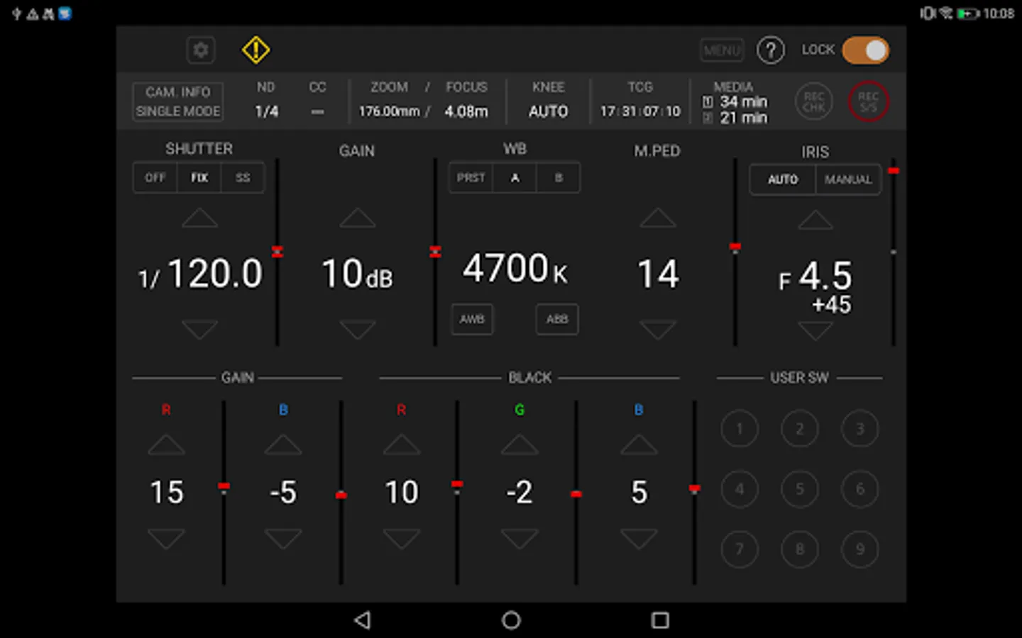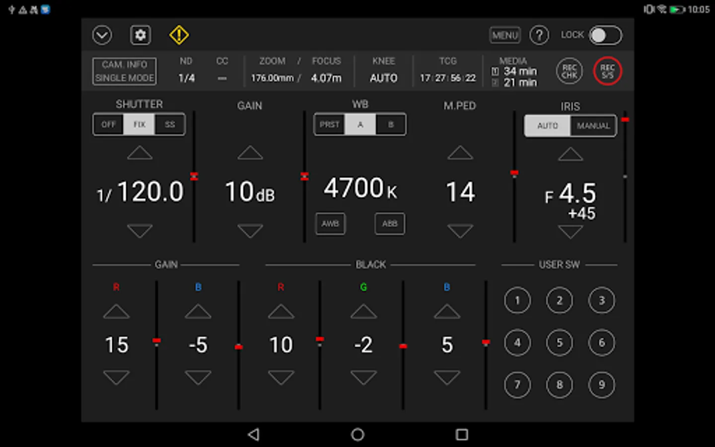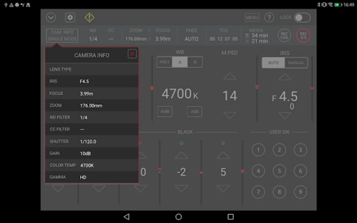 It provides a GUI that displays status information, settings and user switch status in a single screen and the ability to change camera settings intuitively using a screen touch.