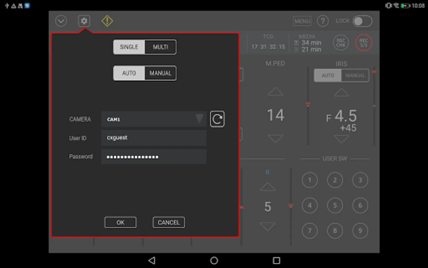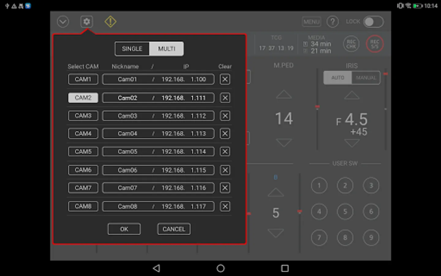 You can set or switch connected cameras in a connect setting panel by tapping a connect manipulation button in the screen. Please refer to "CONNECTION" item by tapping "?" for details.