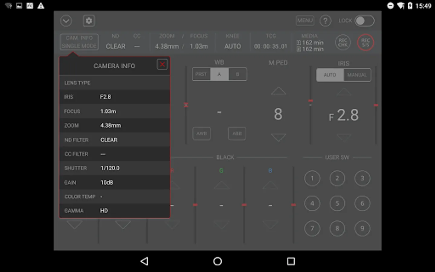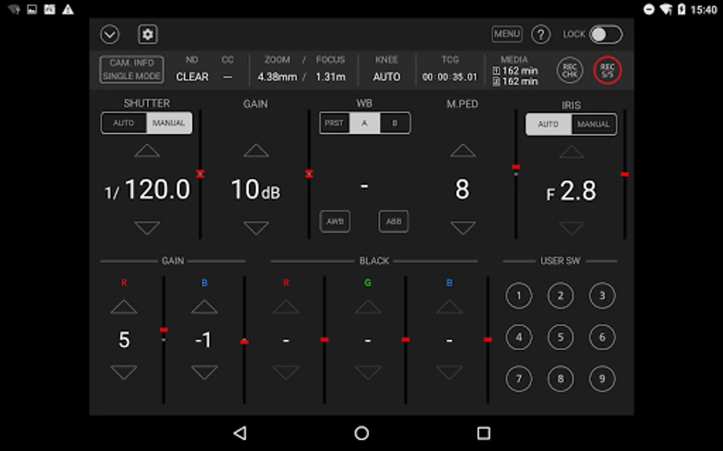 Buttons such as user buttons and REC S/S button in screen can manipulate camera recorder.