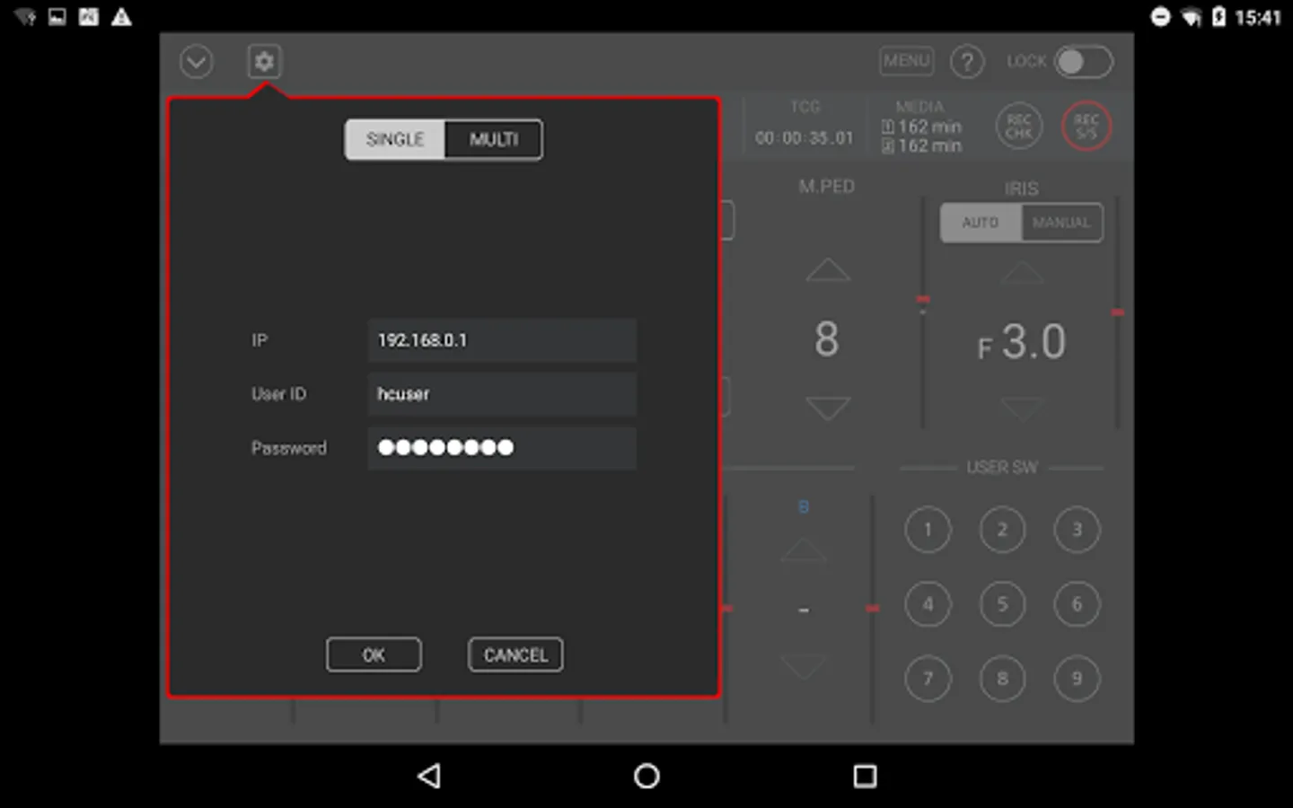 You can set or switch connected cameras in a connect setting panel by tapping a connect manipulation button in the screen. Please refer to "CONNECTION" item by tapping "?" for details.