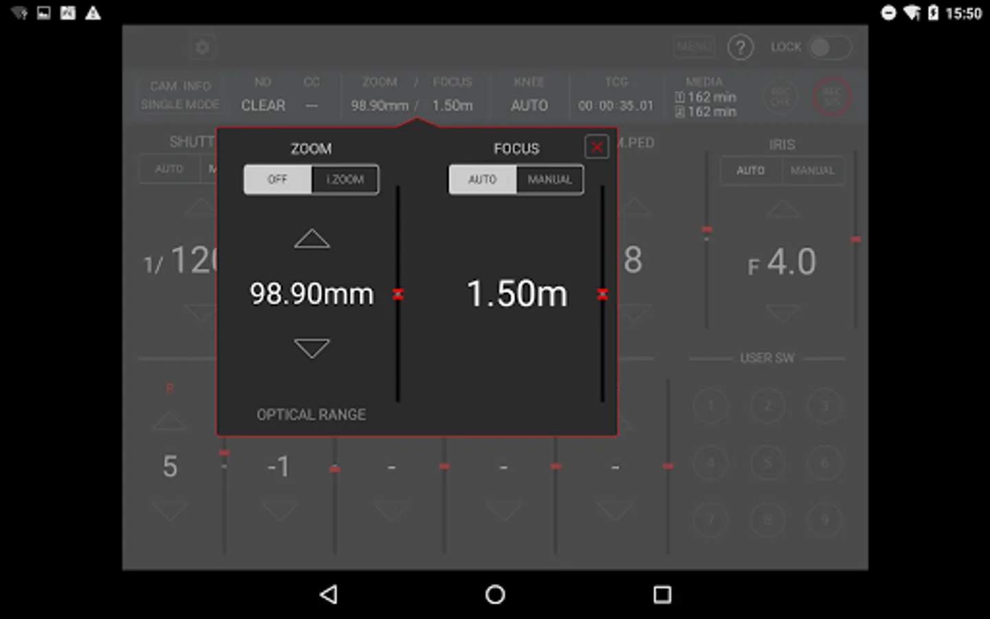 It provides a GUI that displays status information, settings and user switch status in a single screen and the ability to change camera settings intuitively using a screen touch.