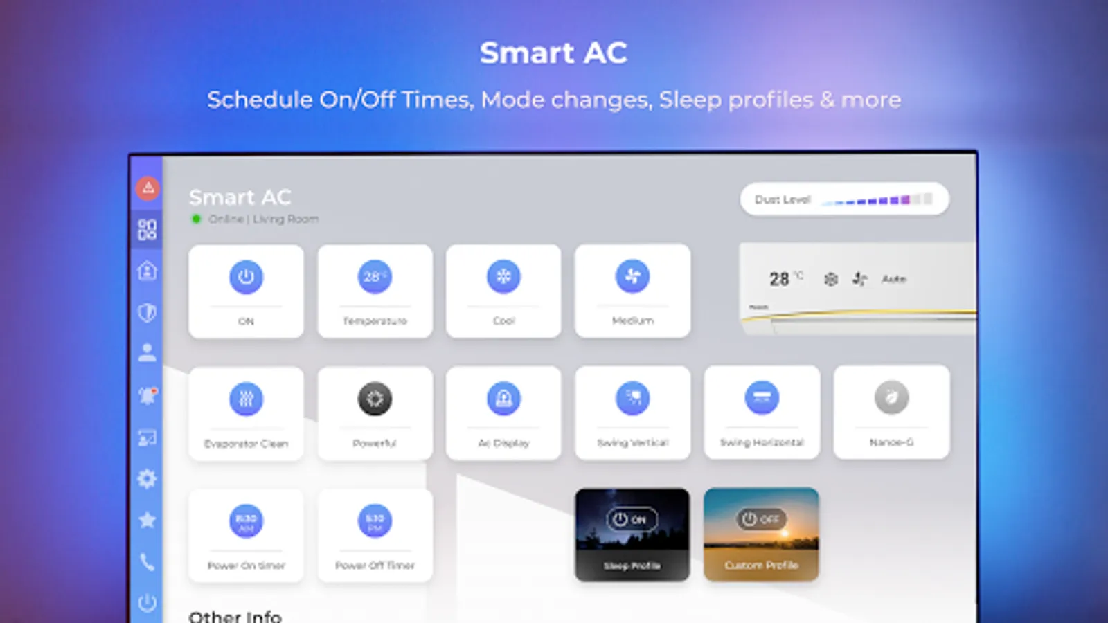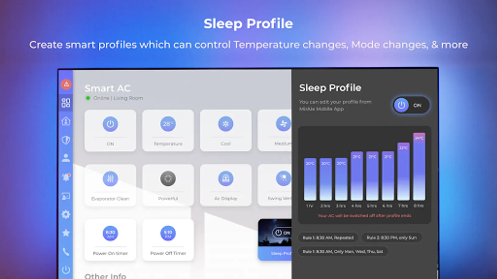 • Create customised sleep profiles and schedule rules of operation