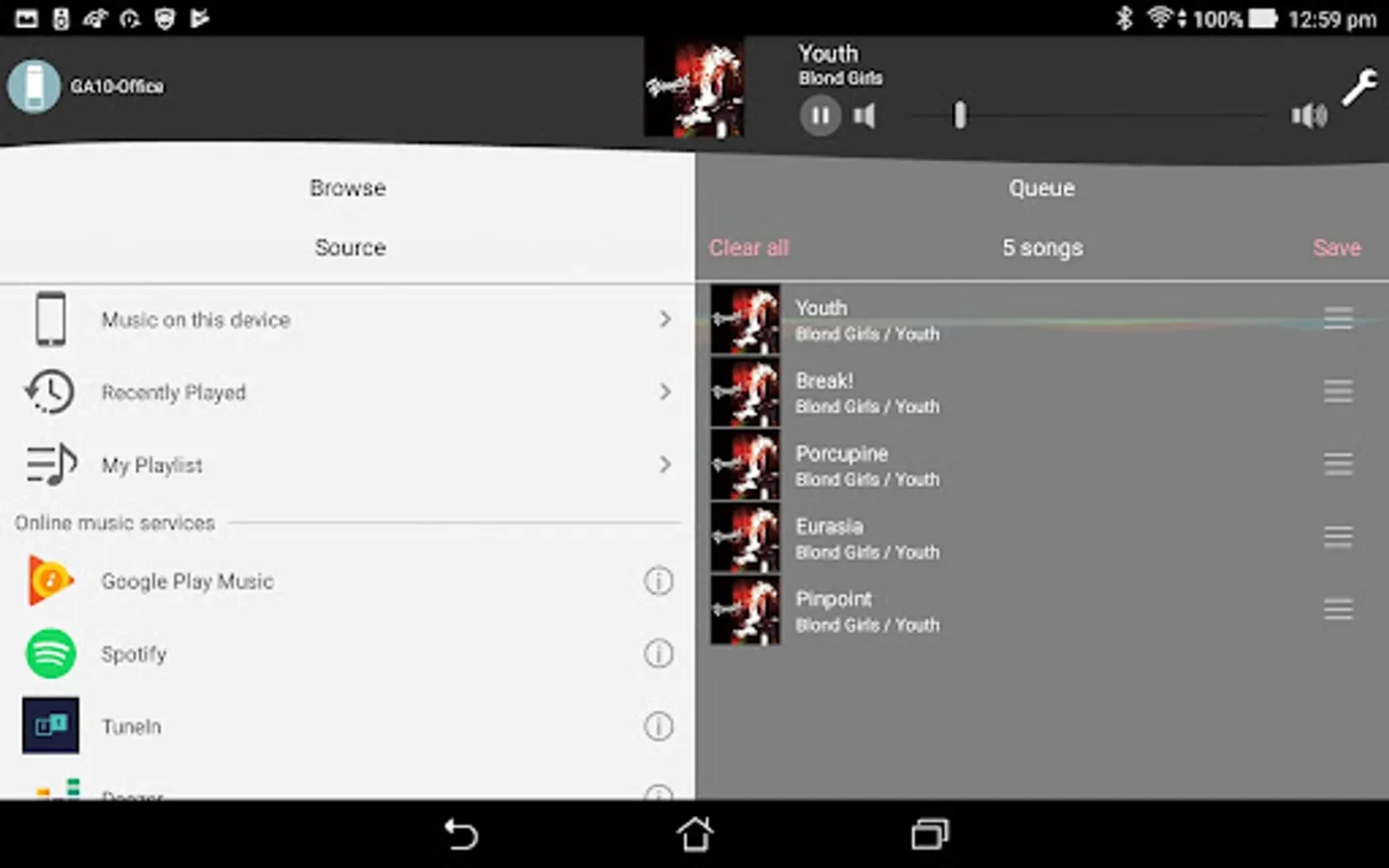 ・Supported Music Output devices: