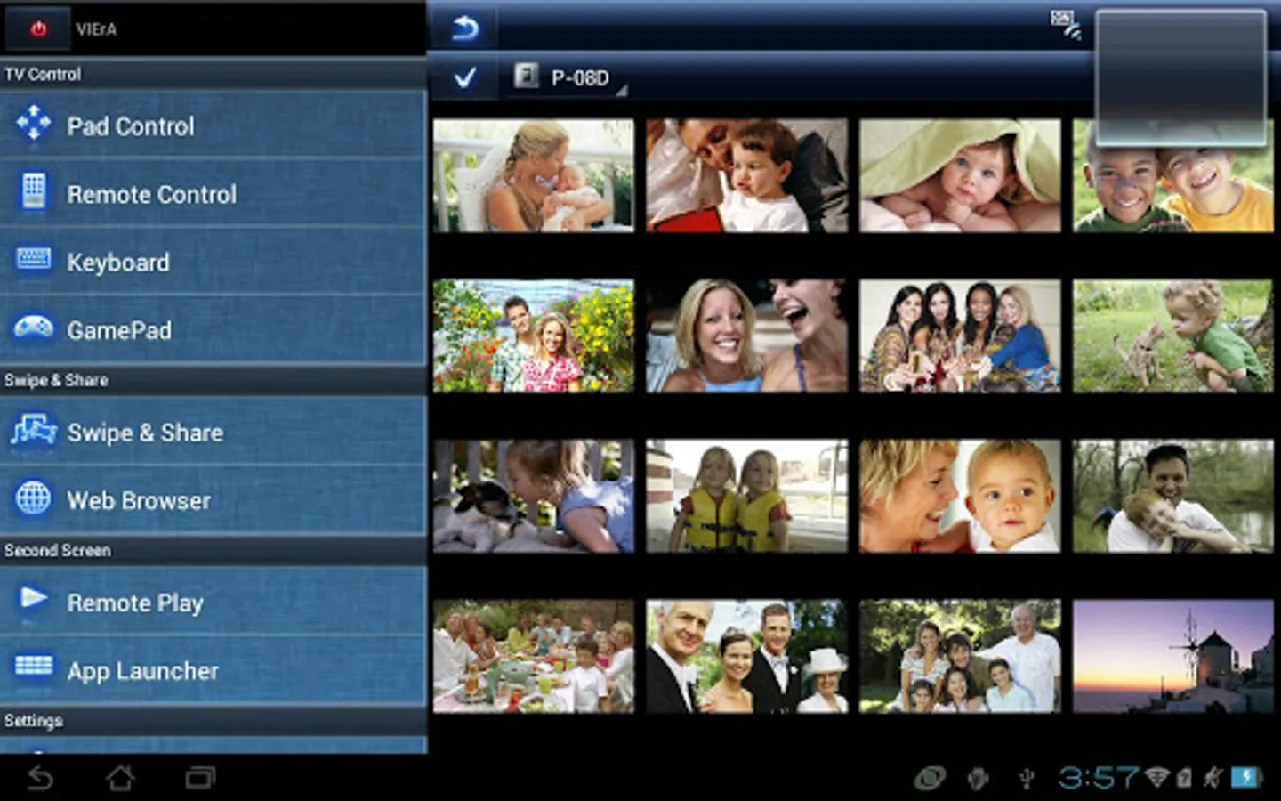 The TV Remote 2 app lets you control VIERA over wireless network (Wi-Fi) more intuitively than the ordinary remote controller. The TV Remote 2 App also lets you transfer pictures, videos, music or websites from your mobile display to VIERA TV, and vice versa.