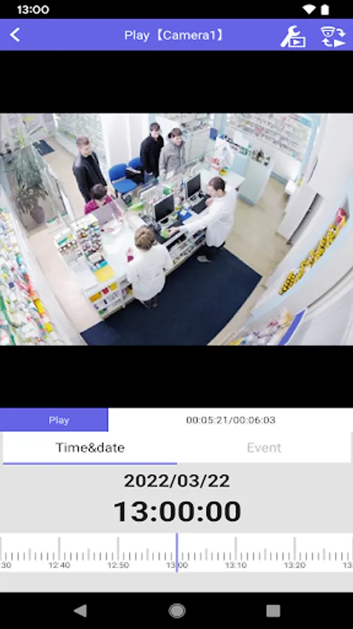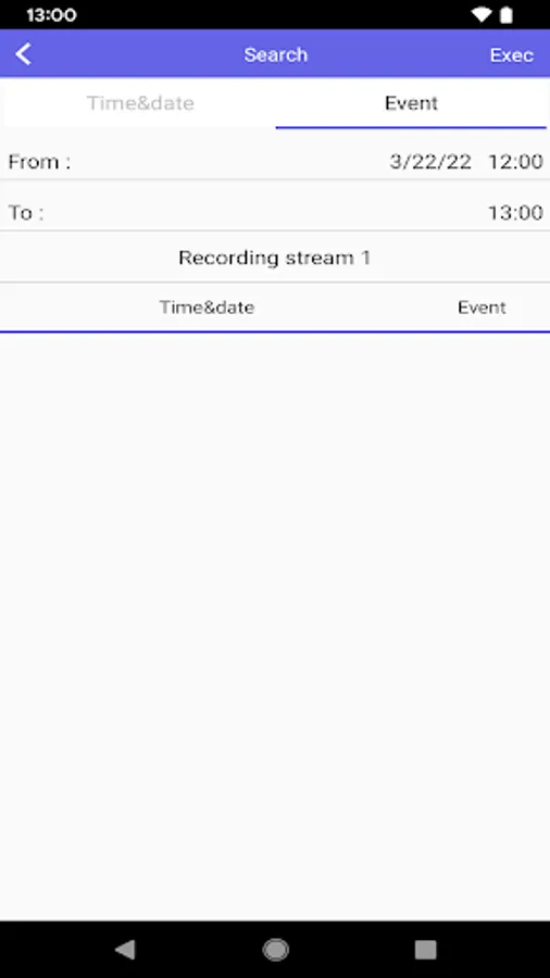 recorded in a recorder (recorder recording). Search recorded video by date, time or event and play.(The event search is available only at the time of SD recording playback.)