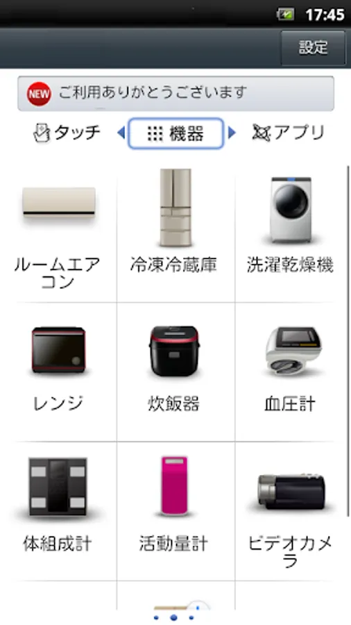 "Touch your smartphone to home appliances. For a smarter life" Panasonic's "touch access method" app for home appliances. Each dedicated app is required to use wireless compatible home appliances.