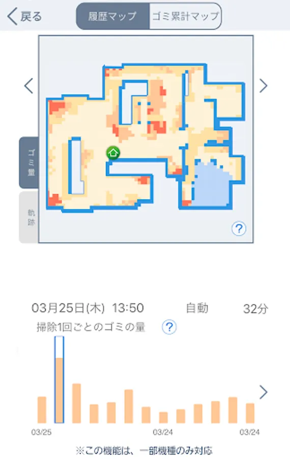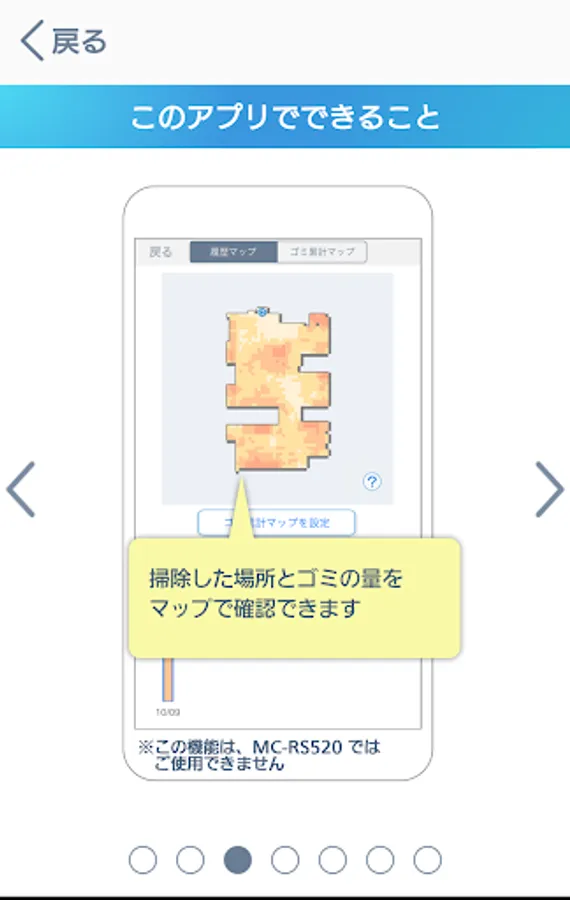 - You can check the location you cleaned and the amount of trash on the map. (MC-RS800/MC-RS810)