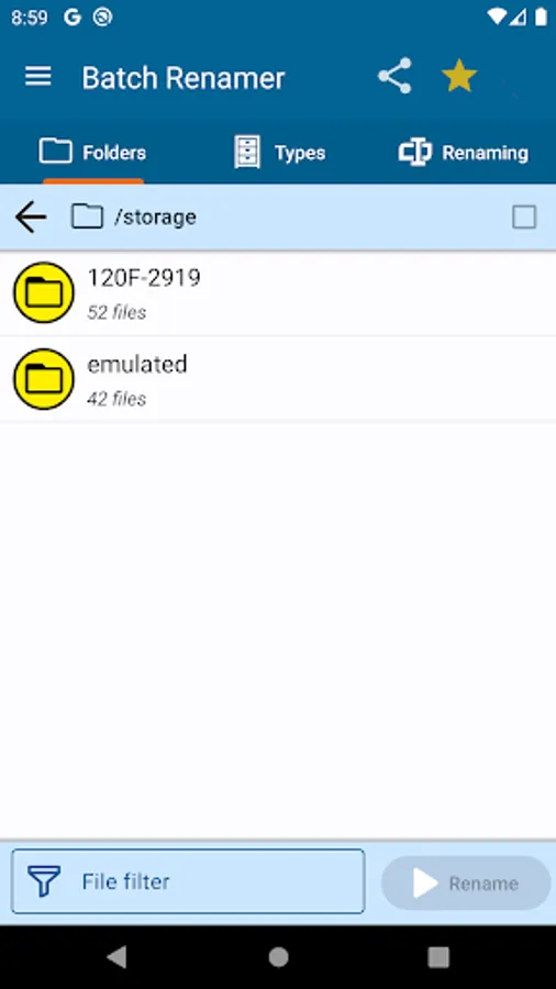 • WRITE_EXTERNAL_STORAGE - Allows writing to storage exclusively for renaming files.
