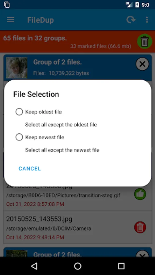 The application can be configured to automatically select the newest files or the oldest files. You can also choose to select the files to delete yourself.