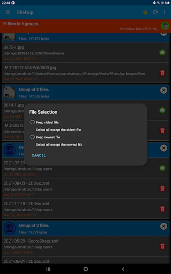 This application searches for duplicate files on your device and allows you to clean them in one click.