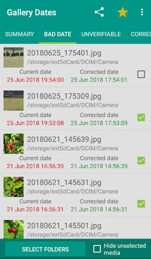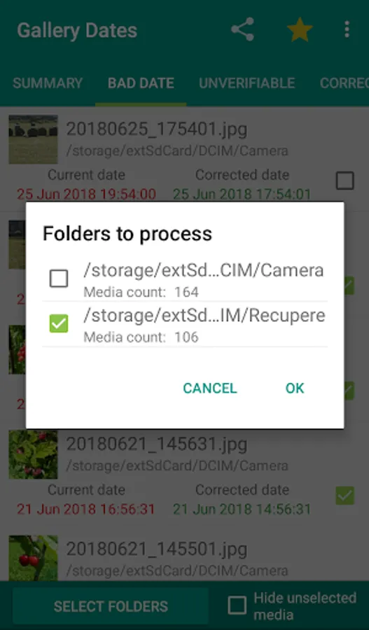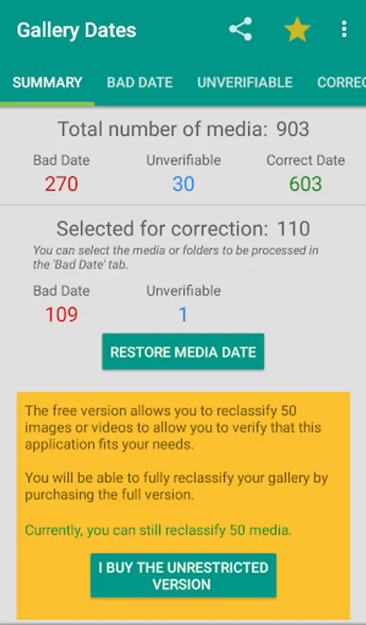 The free version allows you to process 50 images or videos to allow you to verify that this application meets your needs. Files can be selected individually or by folder if you don't want to fix your entire gallery.