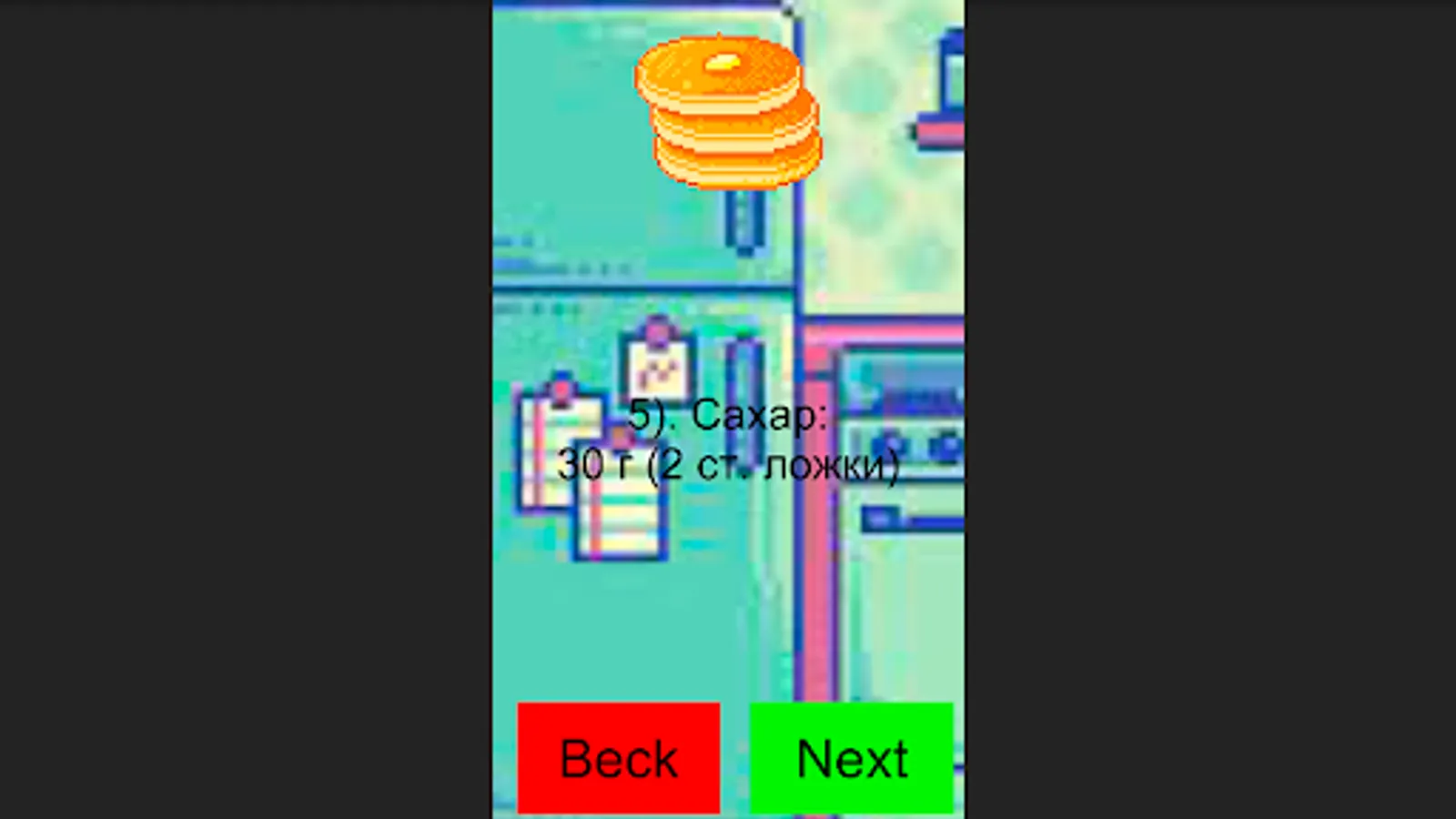 Prepare fluffy pancakes according to our recipe. The screen lists the ingredients and proportions to make your dream pancakes. Milk, sugar... what's next? Download the game to find out!